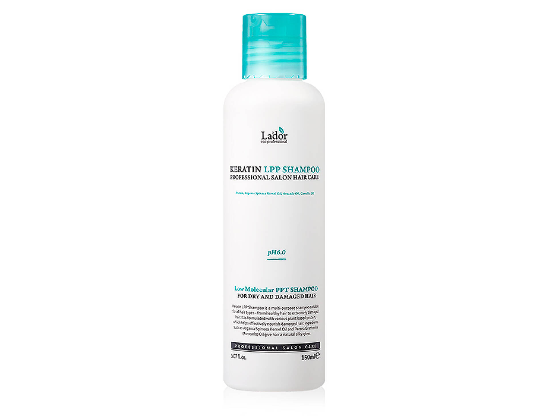 Низькокислотний відновлюючий шампунь Lador Keratin LPP Shampoo призначений для професійного застосування з метою глибокого очищення волосся та шкіри голови, а також поповнення дефіциту білка та інтенсивного живлення волосяної кутикули. Може використовуватись для гіперчутливої шкіри голови. Унікальний склад шампуню включає протеїново- амінокислотний комплекс, що дозволяє відновити навіть сильно пошкоджене волосся. LPP шампунь сприяє генерації білка і робить їх м'якими, приємними на дотик. Також серед інгредієнтів присутні шовковий, колагеновий та рослинний білки, дія яких спрямована на оздоровлення волосся. Для створення формули шампуню використано 10 видів ефірних олій, які регулюють жирність шкіри голови, заповнюють втрату вітамінів та мінеральних речовин. Для зміцнення волосся та надання особливої шовковистості використаний кератин. Цей засіб ідеально підходить для всіх типів волосся. У складі відсутні активні ПАР та SLS.